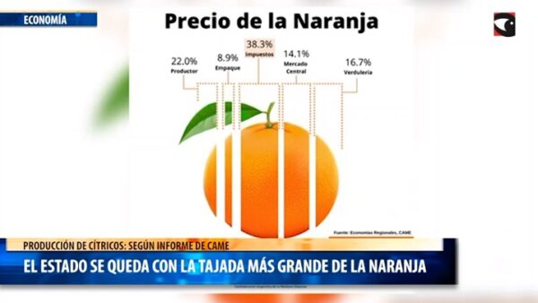 según informe de CAME, el Estado se queda con la tajada más grande de la naranja
